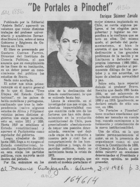 "De Portales a Pinochet" [artículo] Enrique Skinner Zavala.