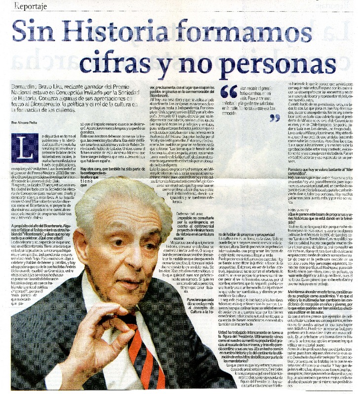 Sin historia formamos cifras y no personas (entrevista) [artículo] Álvaro Peña.