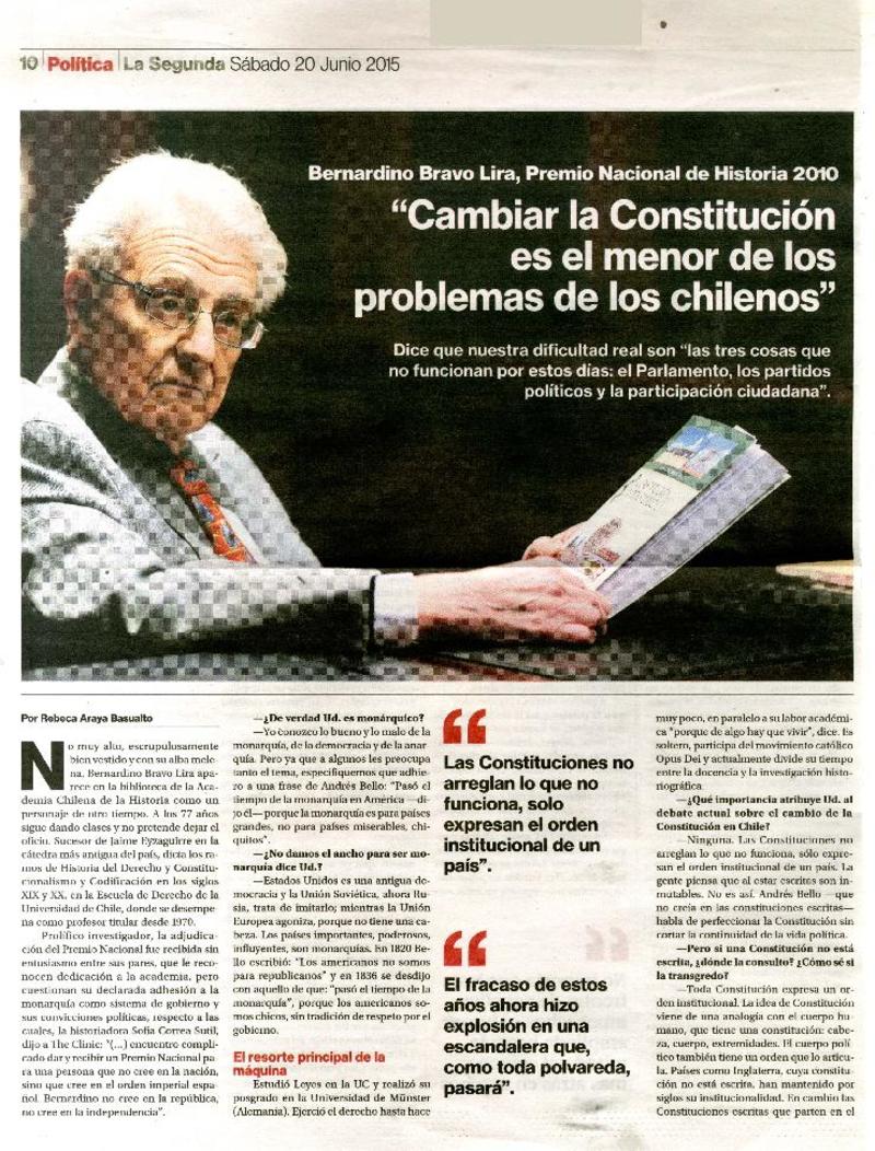 Bernardino Bravo Lira propuesto para Premio Nacional de Historia [artículo].