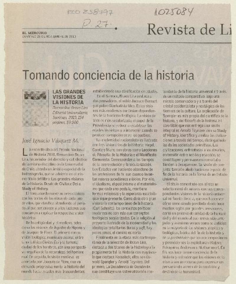 Tomando conciencia de la historia [artículo] José Ignacio Vásquez M.