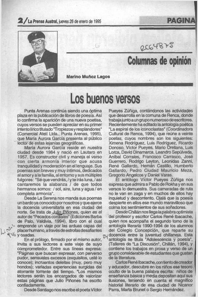 Los buenos versos [artículo] Marino Muñoz Lagos.