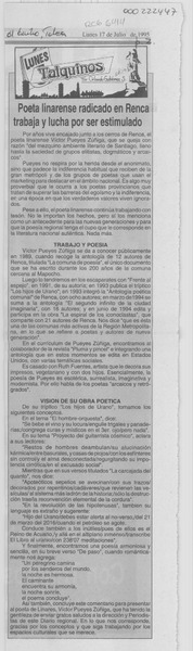 Poeta linarense radicado en Renca trabaja y lucha por ser estimulado [artículo] Orlando Gutiérrez S.