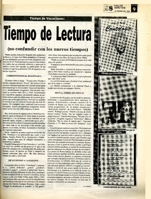 En tus zapatos viejos te salgo a buscar - Rodríguez, Ximena - Suburbanismo - Rompiendo dogmas - Pueyes Zúñiga, Víctor - Aguilera, Oscar - Autores chilenos - Cartas entre Vicente y Juanita, llamada después Teresa - Nicolás cree en la poesía - Angelcos D., Gregorio - Leyton, Rodrigo - Traerte a la casa de Denis Flores - Vieras, Andrea
