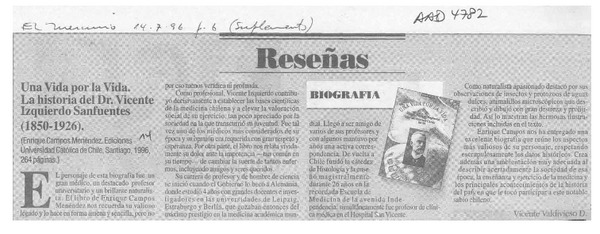 El doctor Vicente Izquierdo Sanfuentes [artículo] Sergio Martínez Baeza.