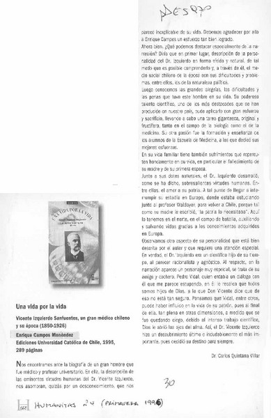 Una vida por la vida [artículo] Carlos Quintana Villar.