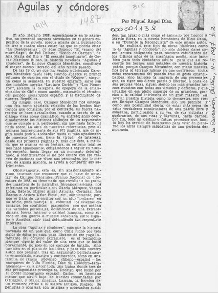 Aguilas y cóndores [artículo] Miguel Angel Díaz.