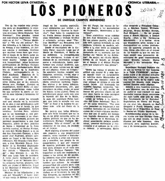 "Los pioneros" [artículo] Héctor Leiva Oyarzún.