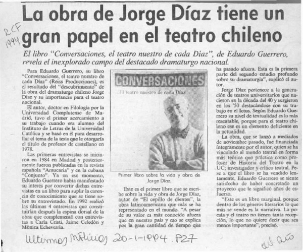 DIAZ, JORGE - GUERRERO DEL RIO, EDUARDO - CONVERSACIONES -- EL TEATRO NUESTRO DE CADA DIAZ