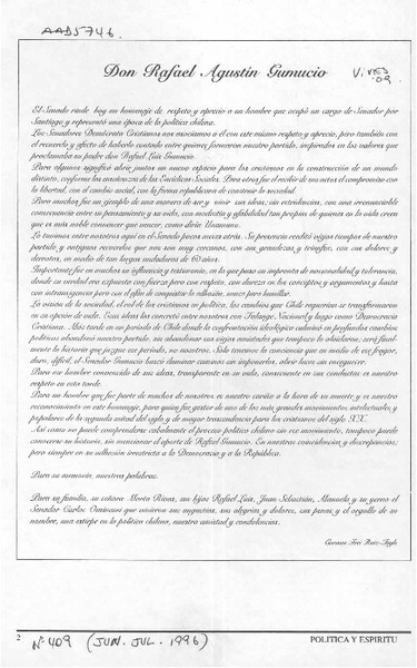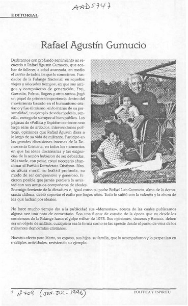 Don Rafael Agustín Gumucio [artículo] Carmen Frei Ruiz- Tagle.