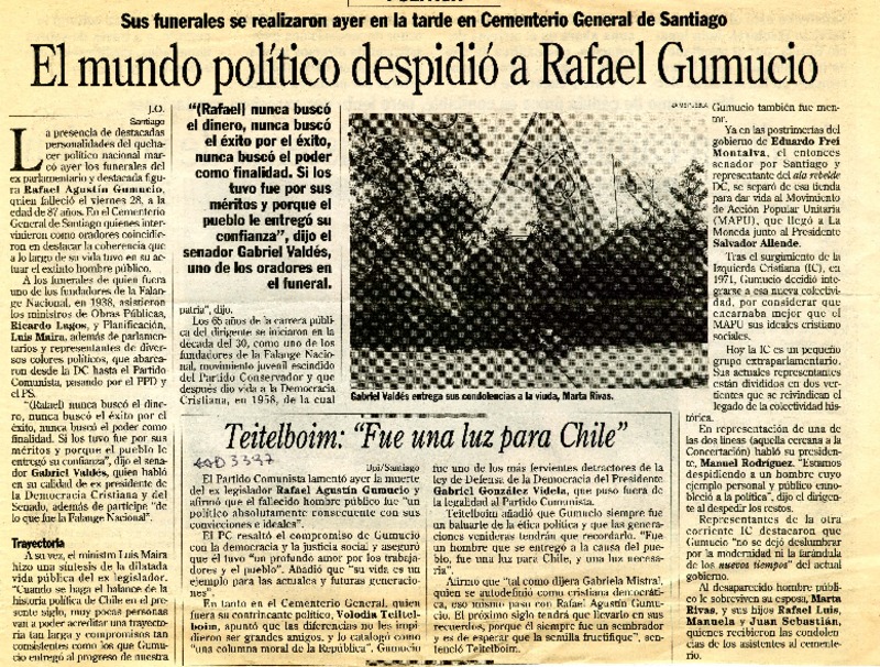 El mundo político despidió a Rafael Gumucio [artículo] J. O.