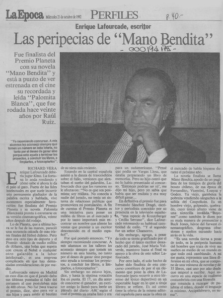 Las peripecias de "Mano bendita" [artículo] Richard Vera.