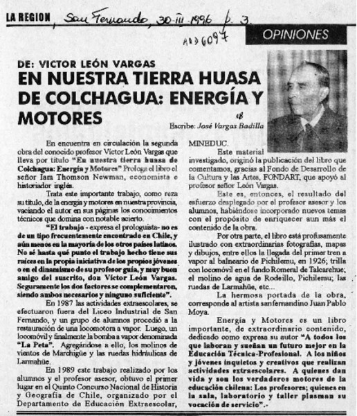 LEON VARGAS, VICTOR M. - NUESTRA TIERRA HUASA DE COLCHAGUA, ENERGIA Y MOTORES