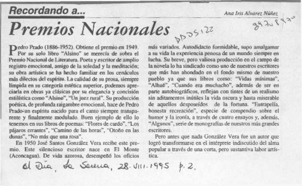 Premios Nacionales [artículo] Ana Iris Alvarez Núñez.
