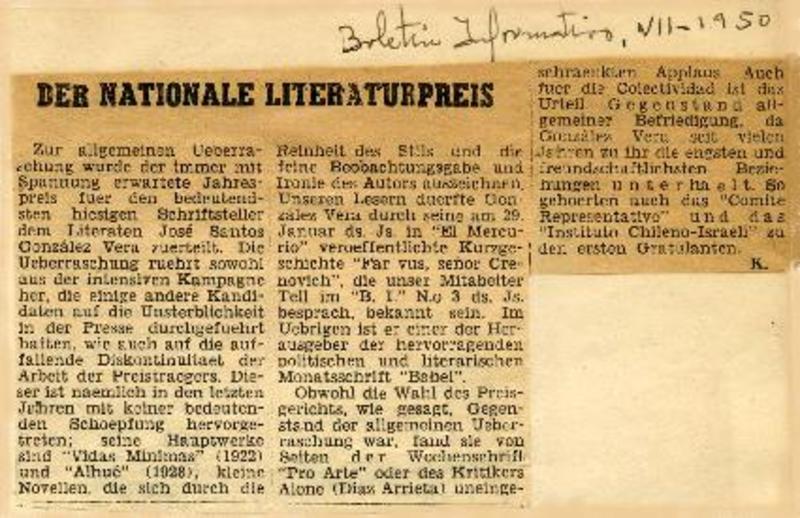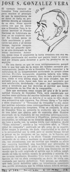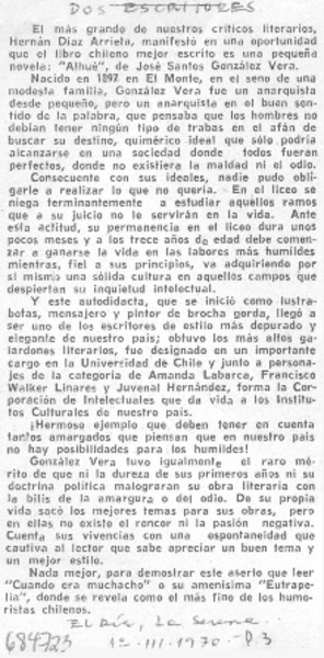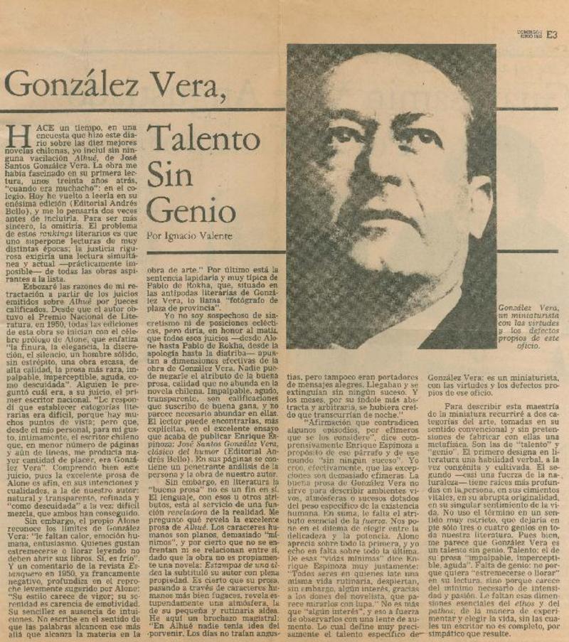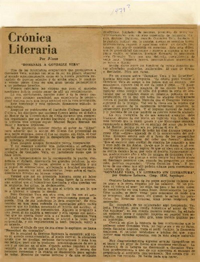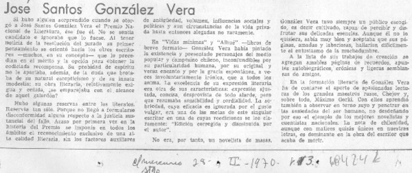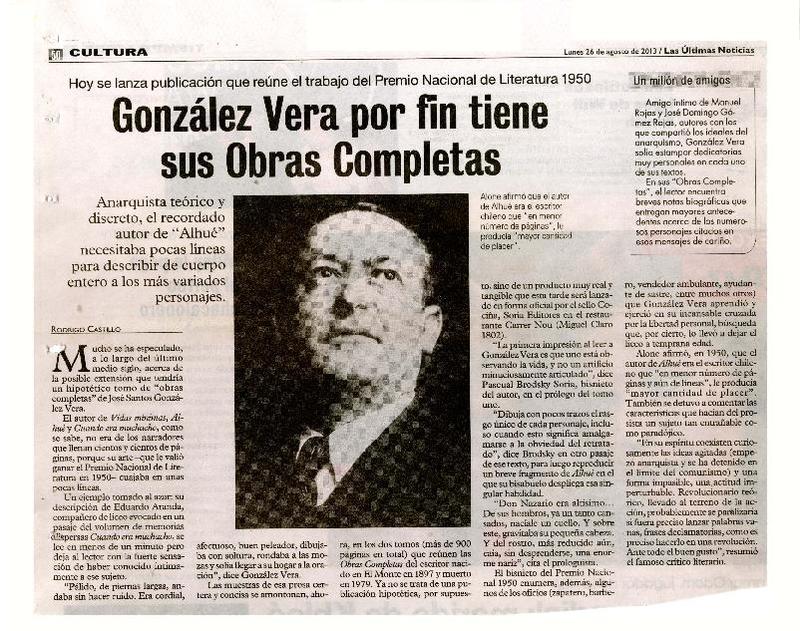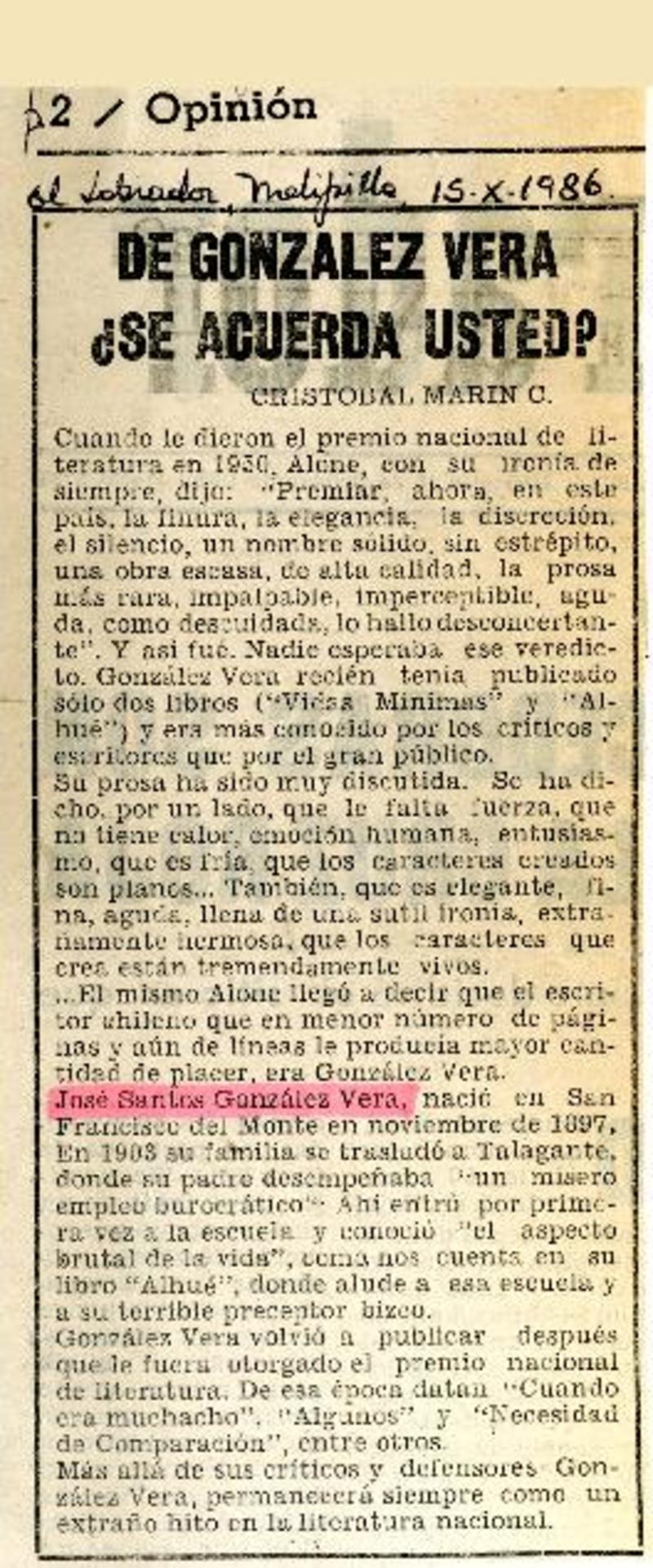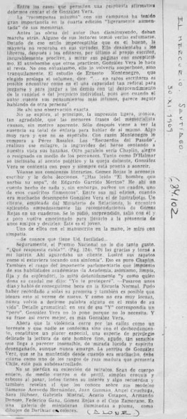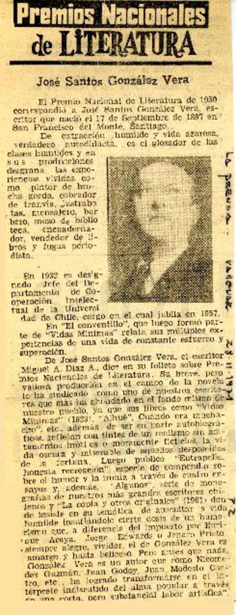 González Vera, José Santos - Recortes de prensa - Autores chilenos