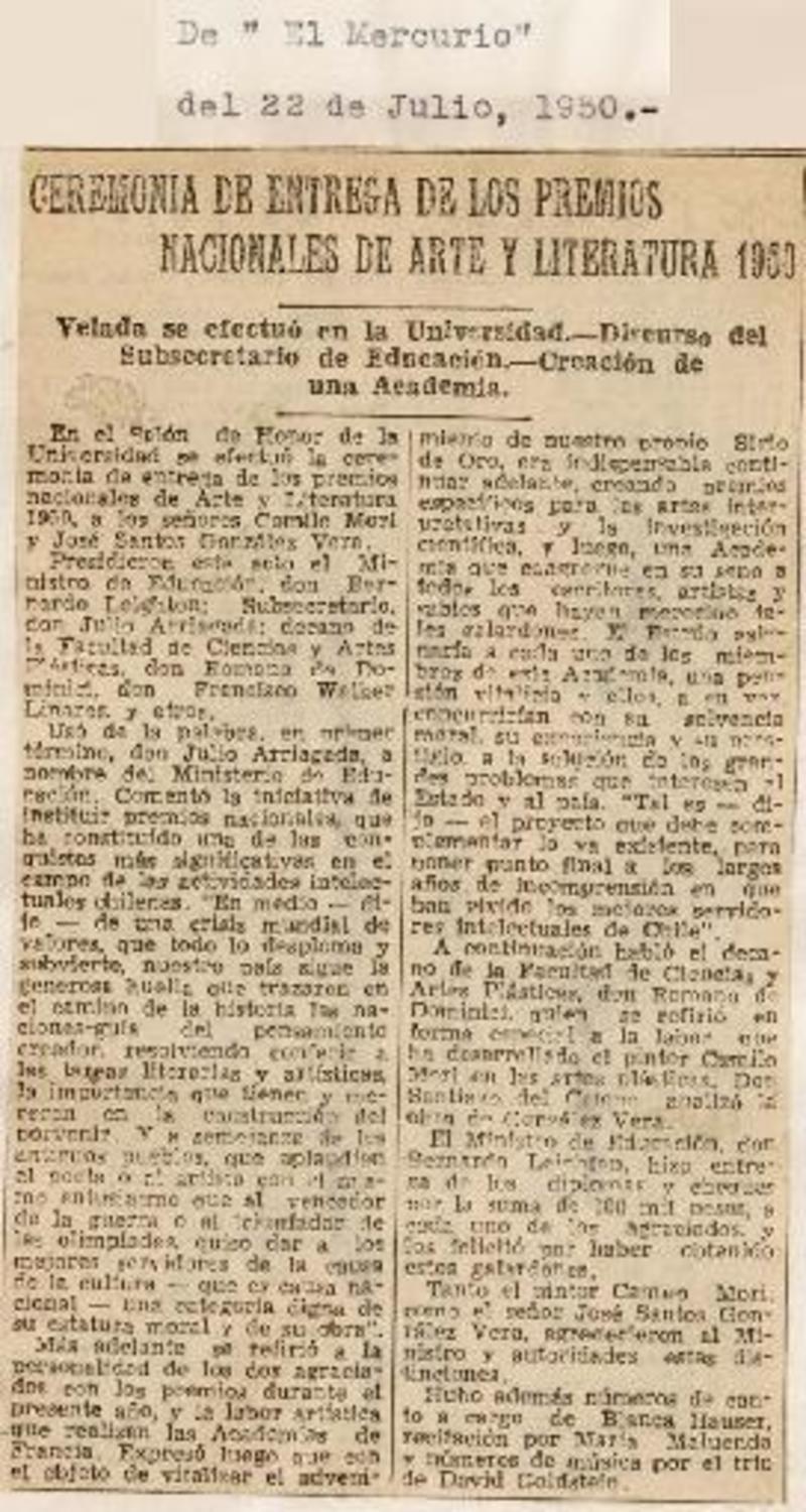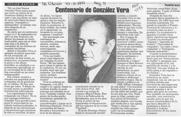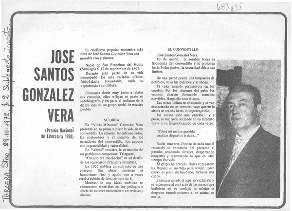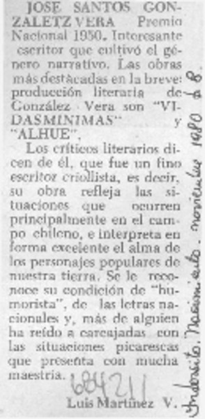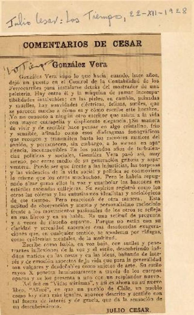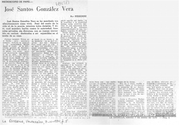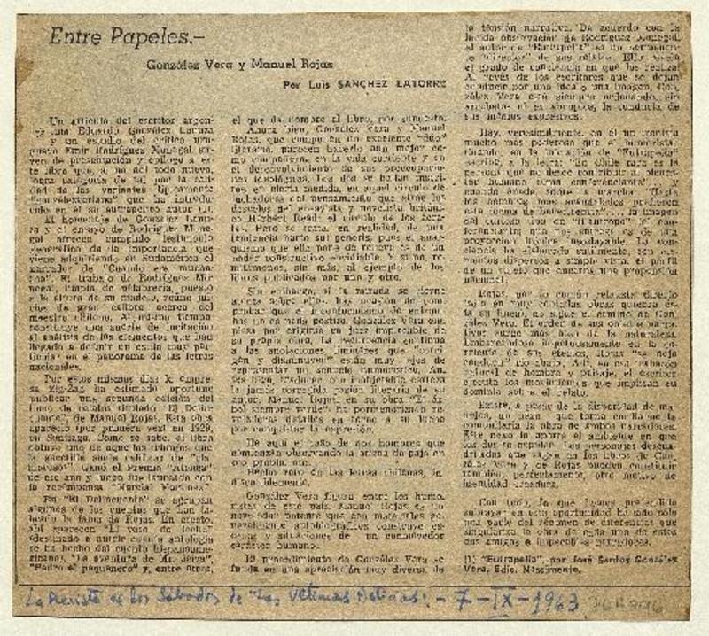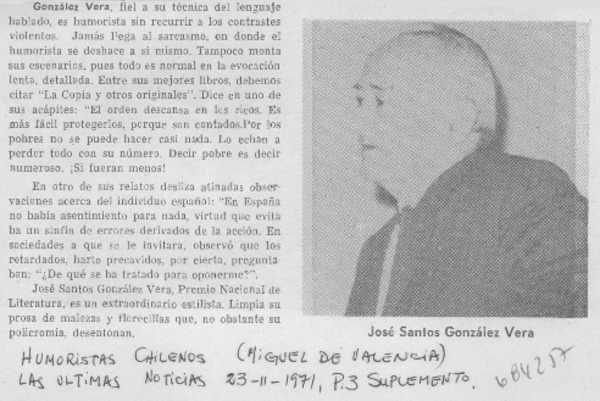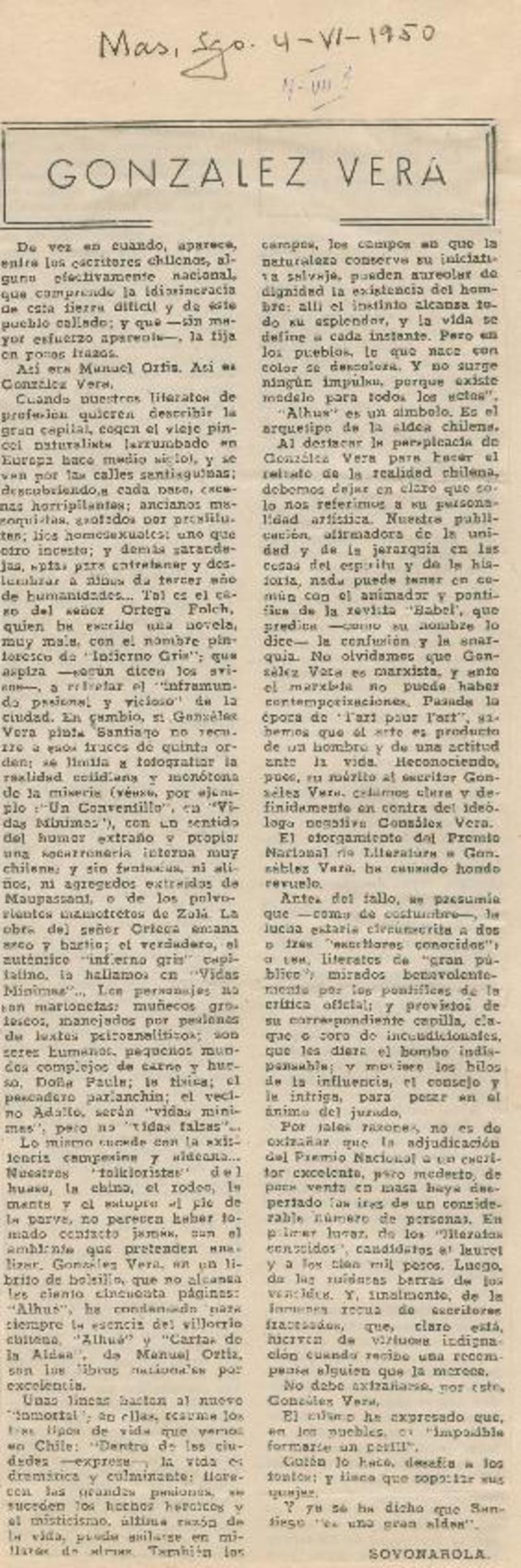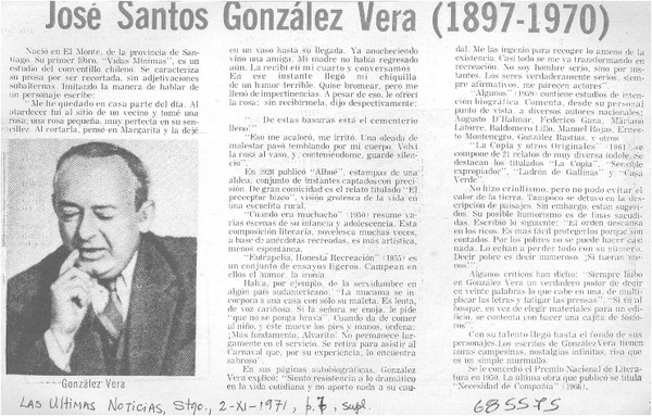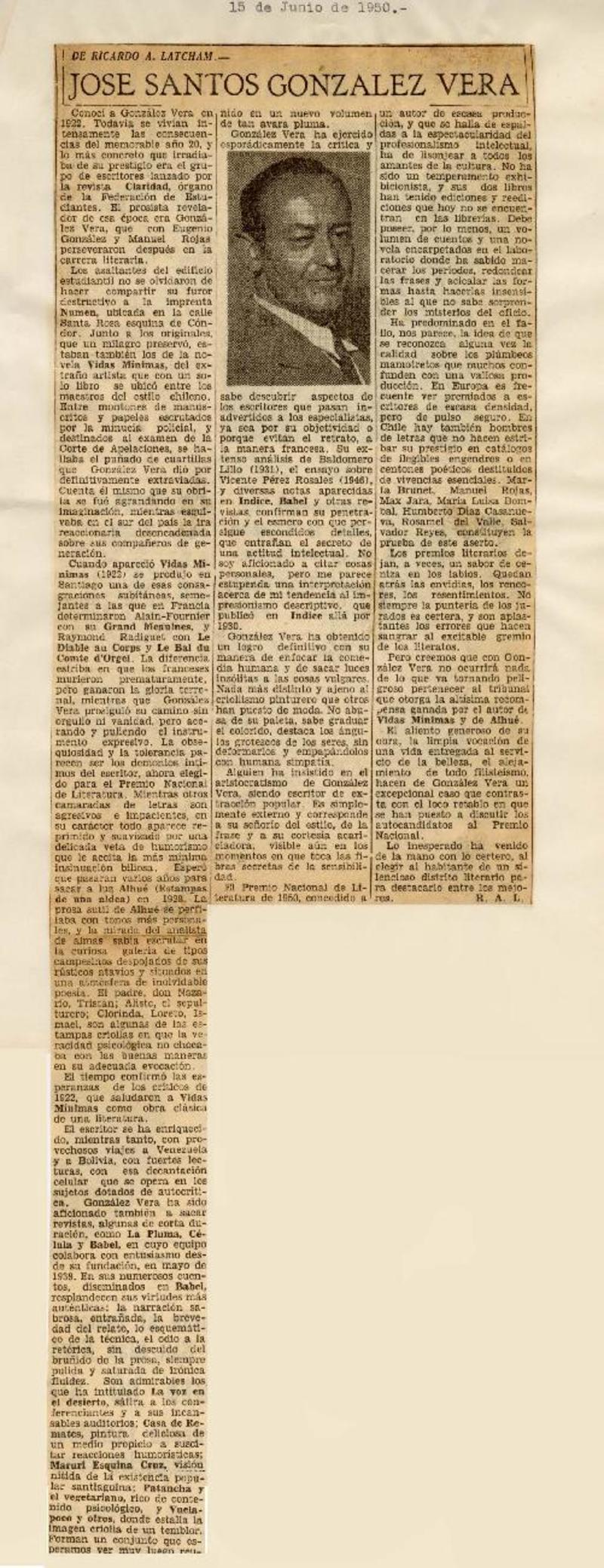 González Vera, José Santos - Recortes de prensa - Autores chilenos