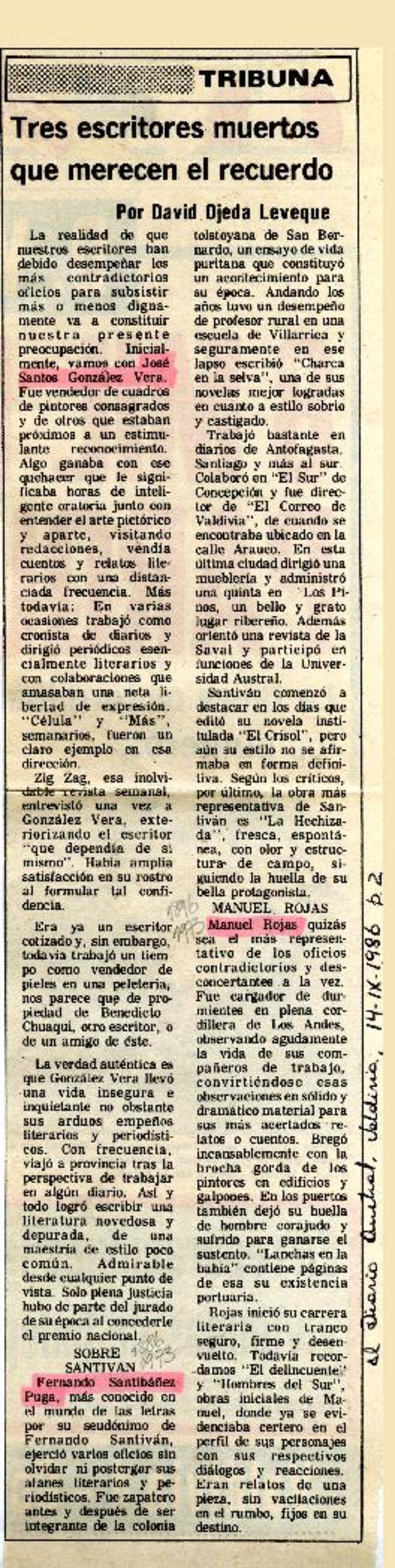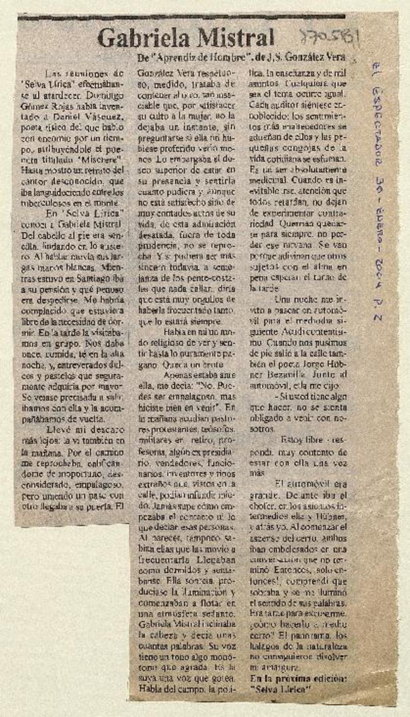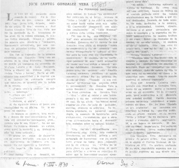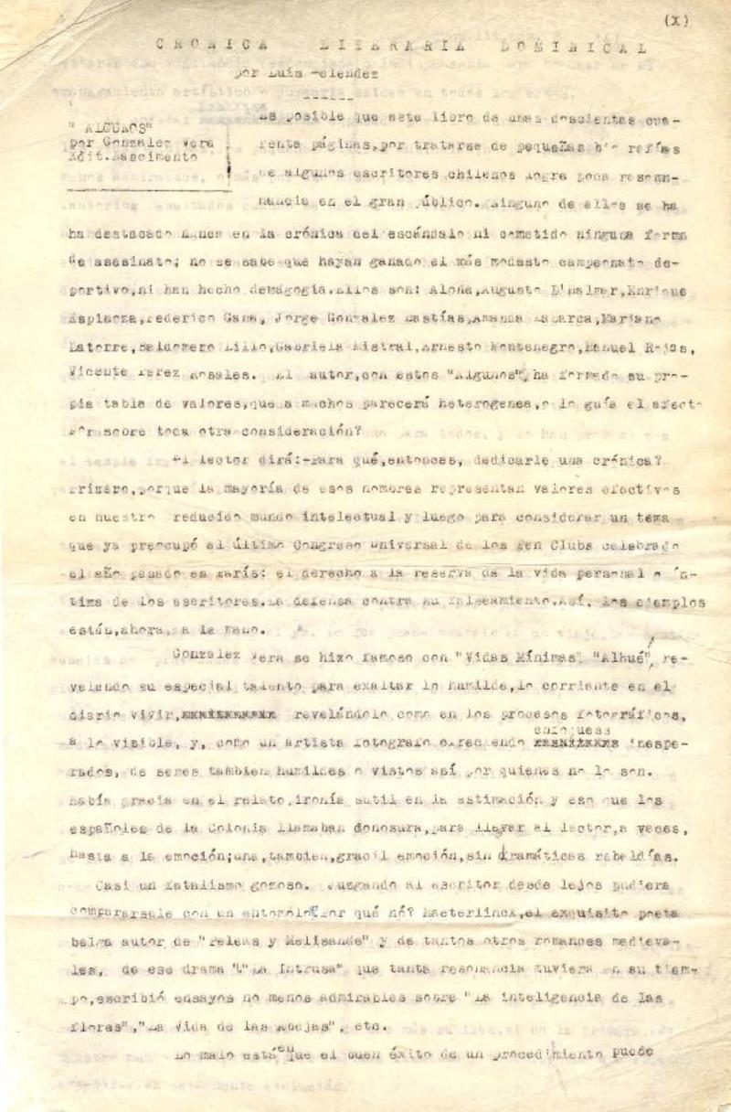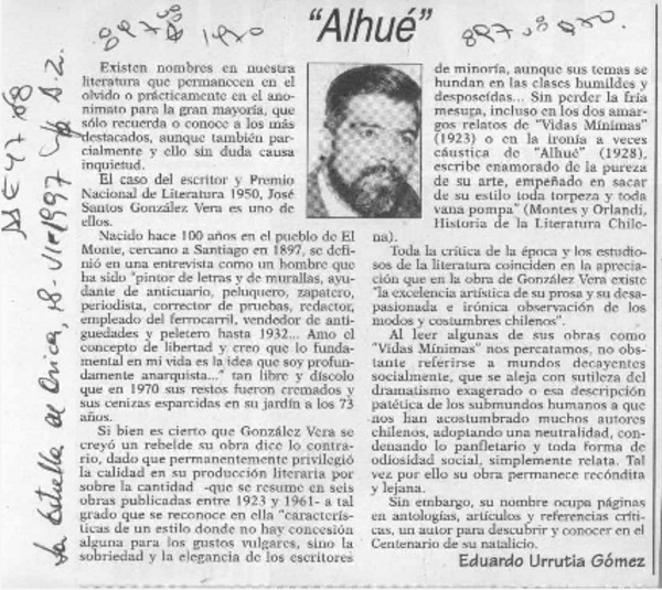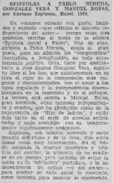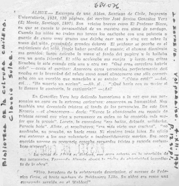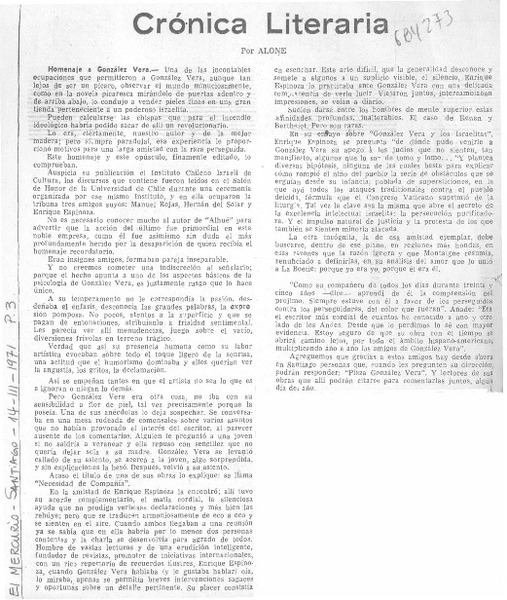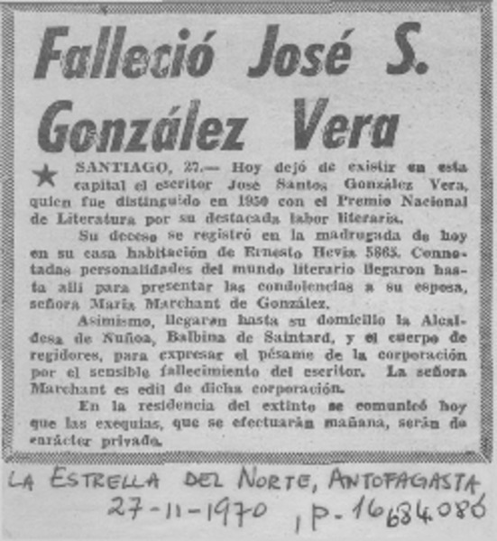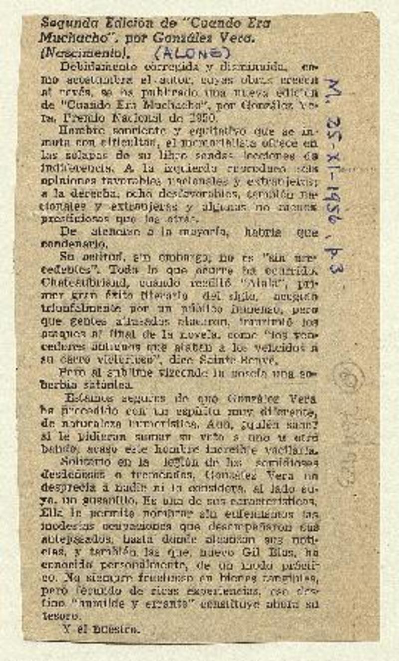 González Vera, José Santos - Recortes de prensa - Autores chilenos