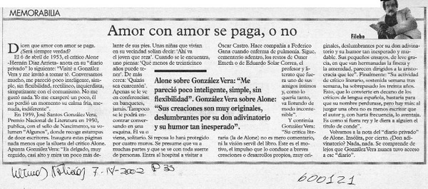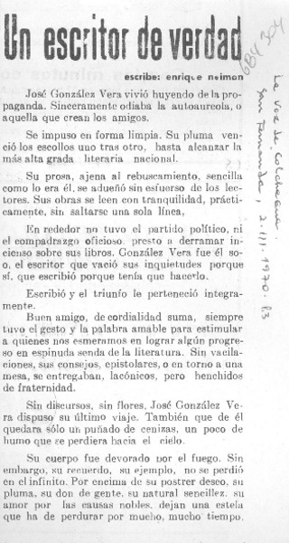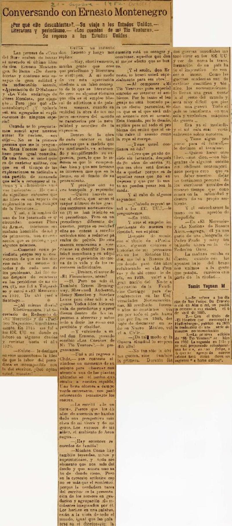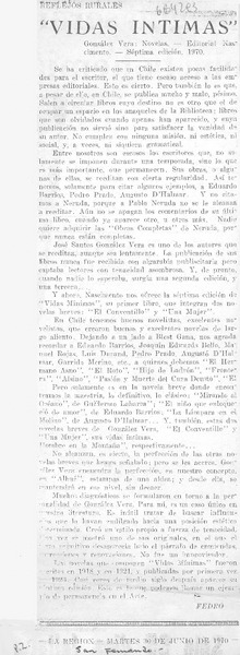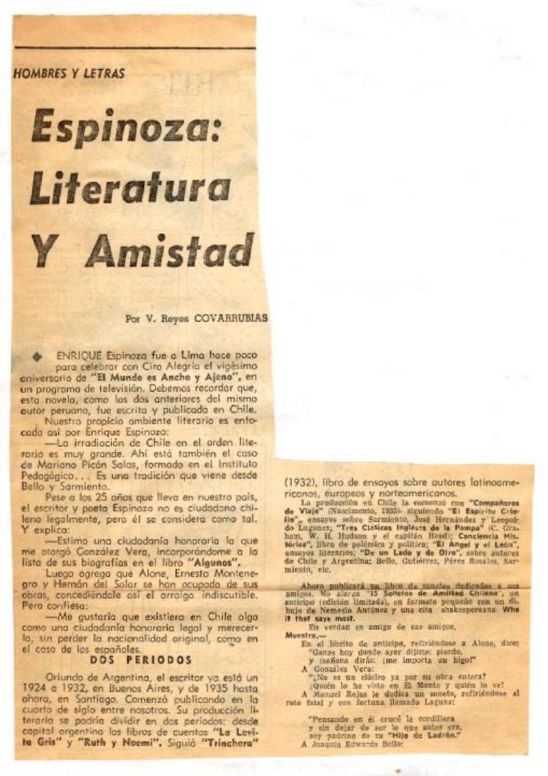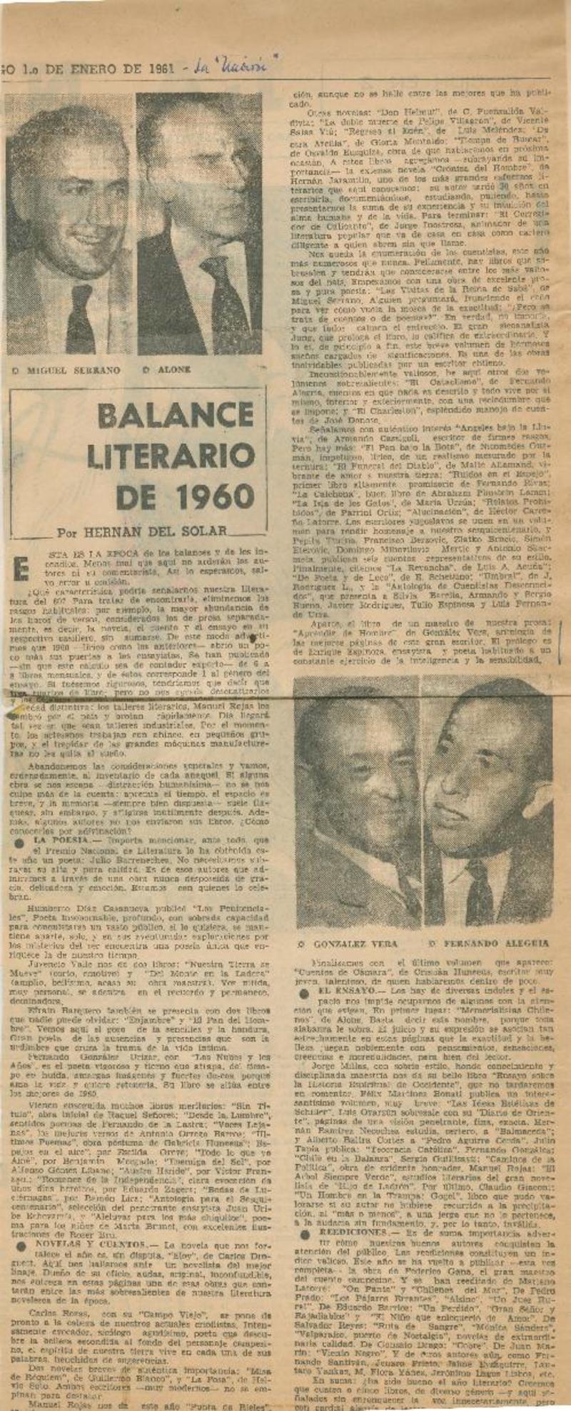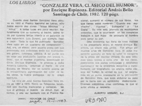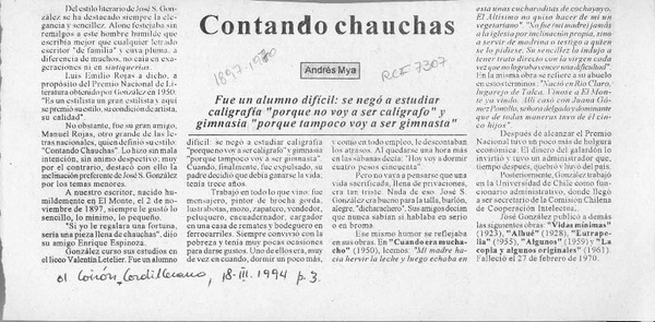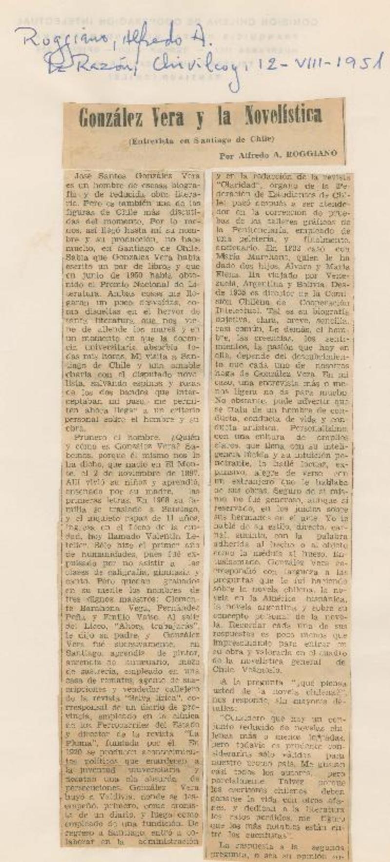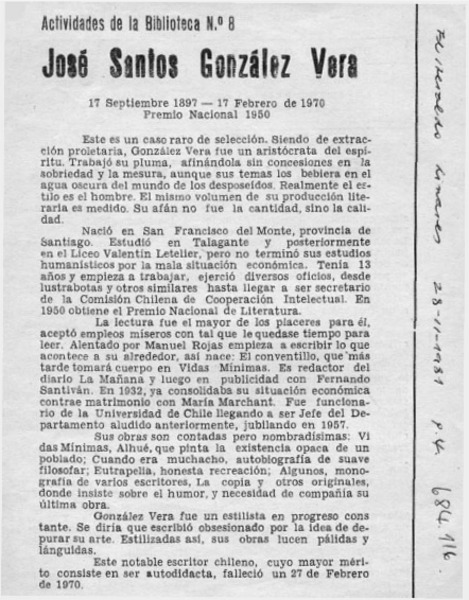 González Vera, José Santos - Recortes de prensa - Autores chilenos