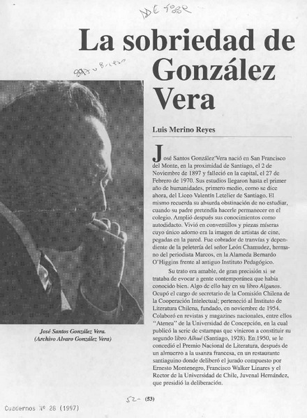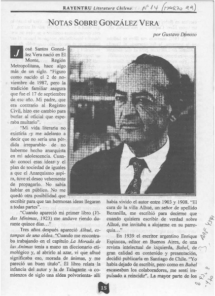 Notas sobre González Vera [artículo] Gustavo Donoso.