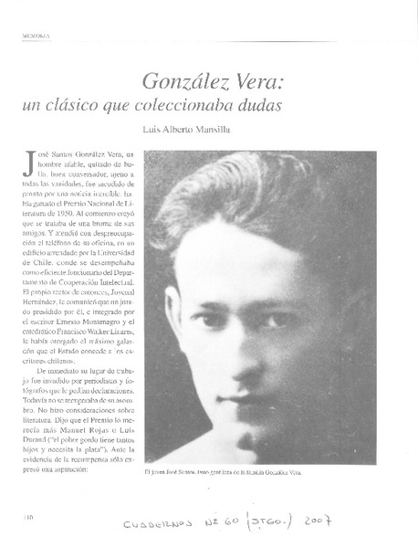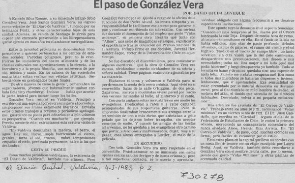 El paso de González Vera [artículo] David Ojeda Leveque.