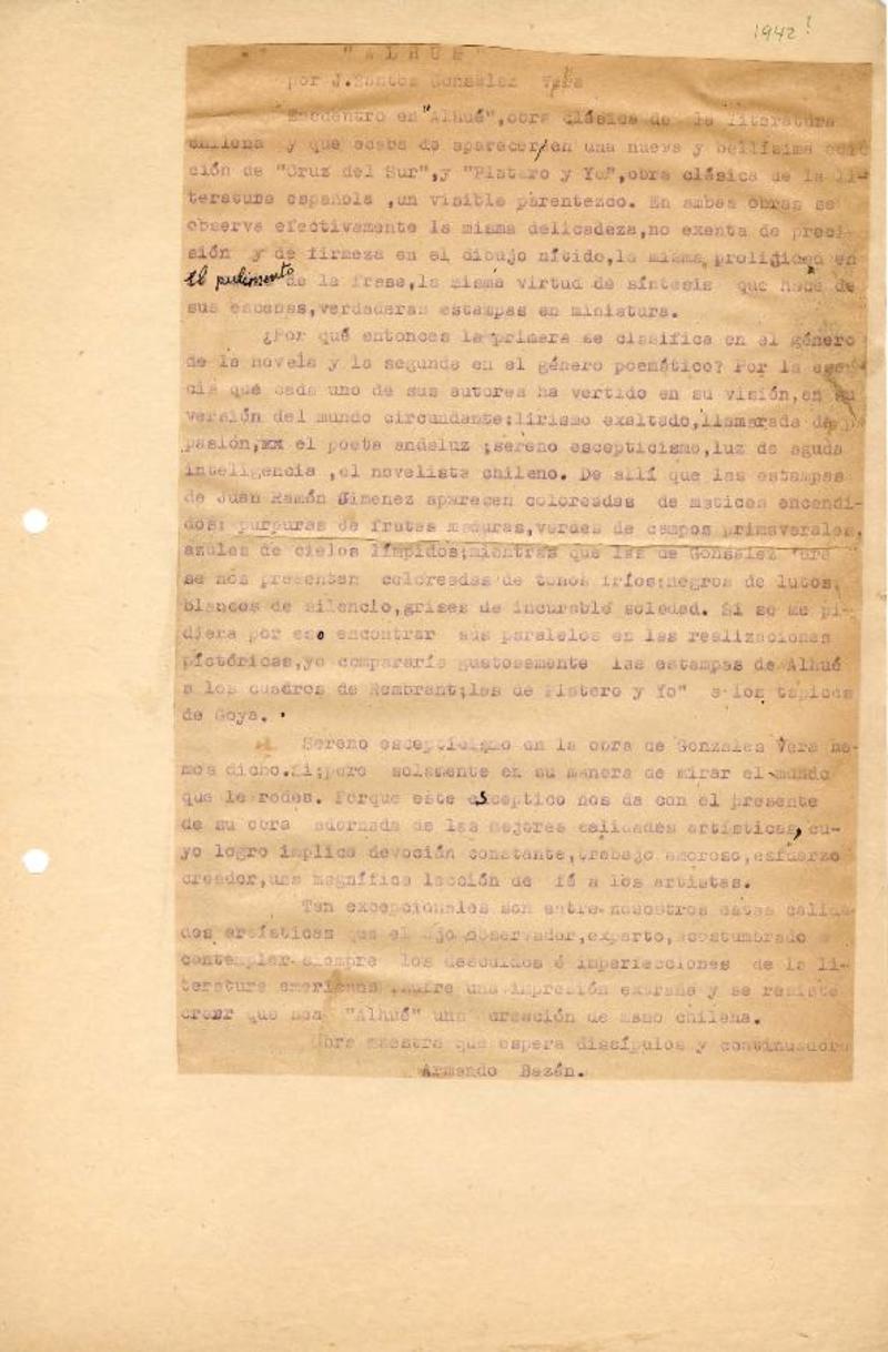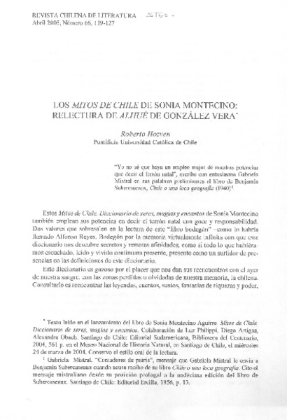 Autores chilenos - González Vera, José Santos - "Alhue"