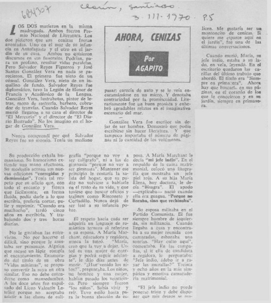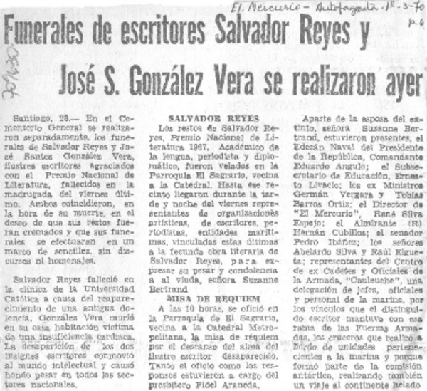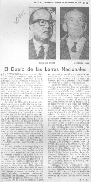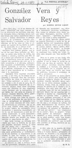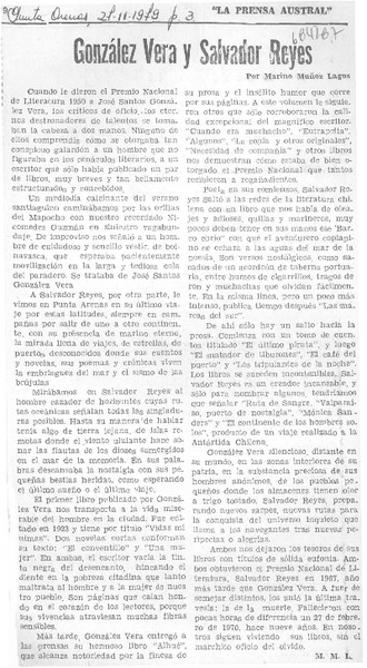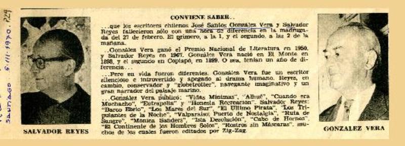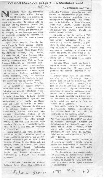 Dos más: Salvador Reyes y J.S. González Vera [artículo] Fernando Santiván.