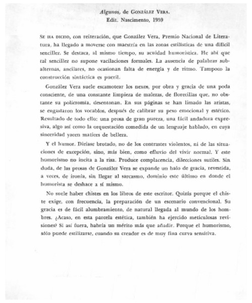 Arte, vida y humor en la obra de González Vera [artículo] Leopoldo Castedo.