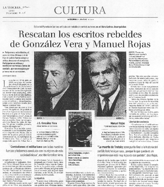 Rescatan los escritos rebeldes de González Vera y Manuel Rojas [artículo] Andrés Gómez Bravo.