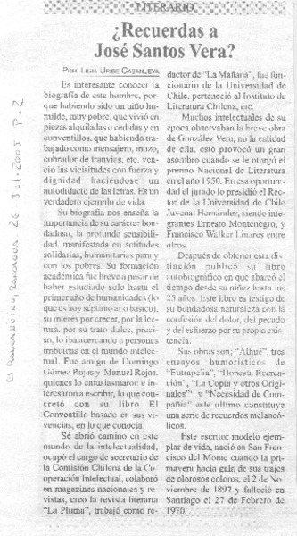 ¿Recuerdas a José Santos Vera? [artículo] Ligia Uribe Casanueva.