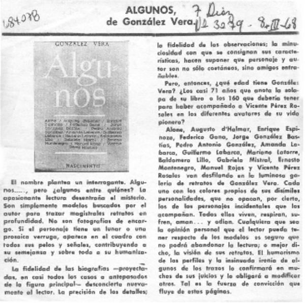Algunos, de González Vera [artículo] Vicente Mengod.