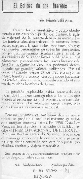 El eclipse de dos literatos [artículo] Eugenio Véliz Arias.