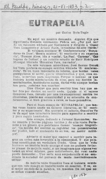 "Eutrapelia" por Gonález Vera [artículo] Alone.