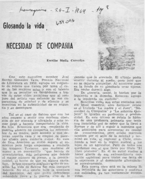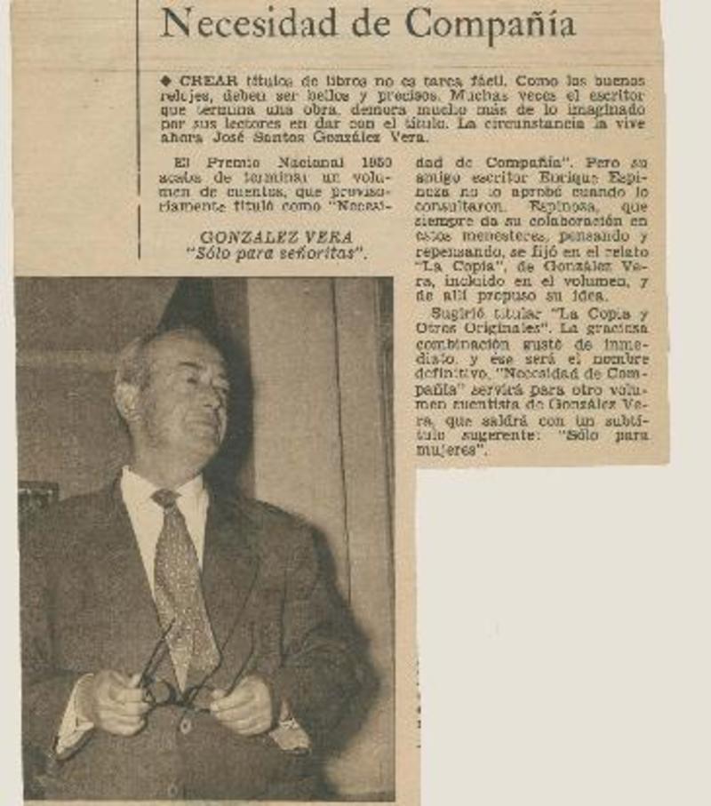 Autores chilenos - González Vera, José Santos - Necesidad de compañía