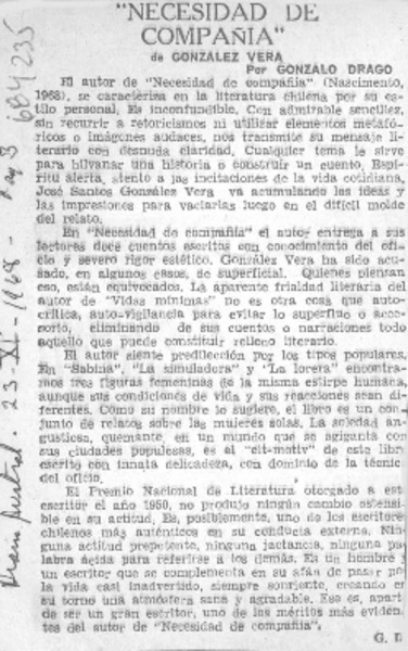 "Necesidad de compañía" [artículo] Gonzalo Drago.