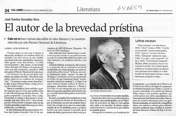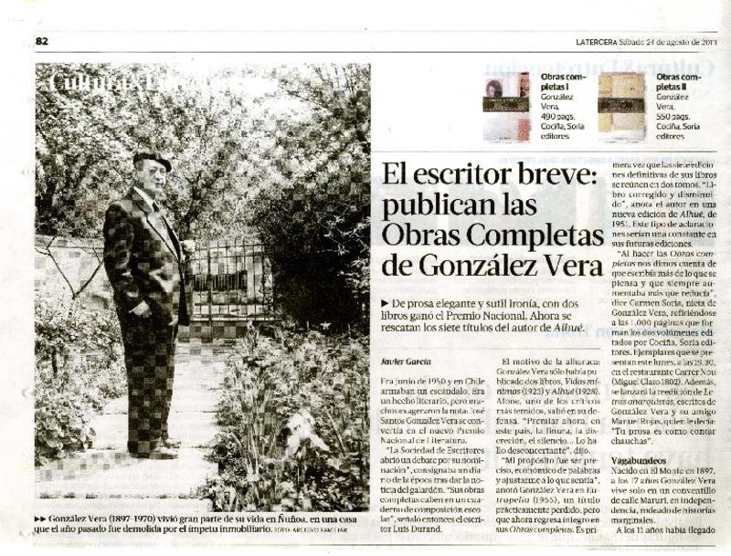 El escritor breve: publican la Obras Completas de González Vera [artículo] Javier García.