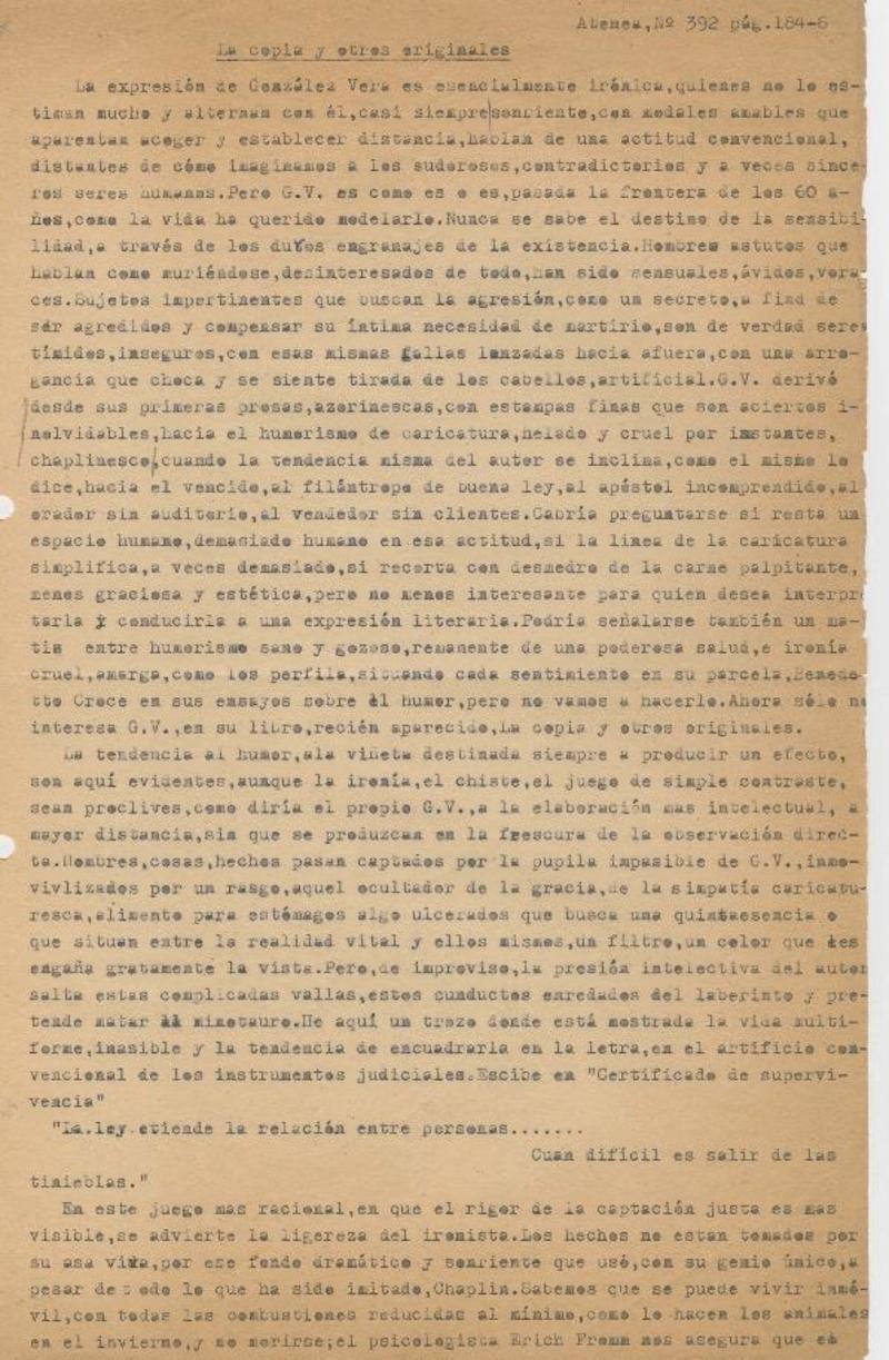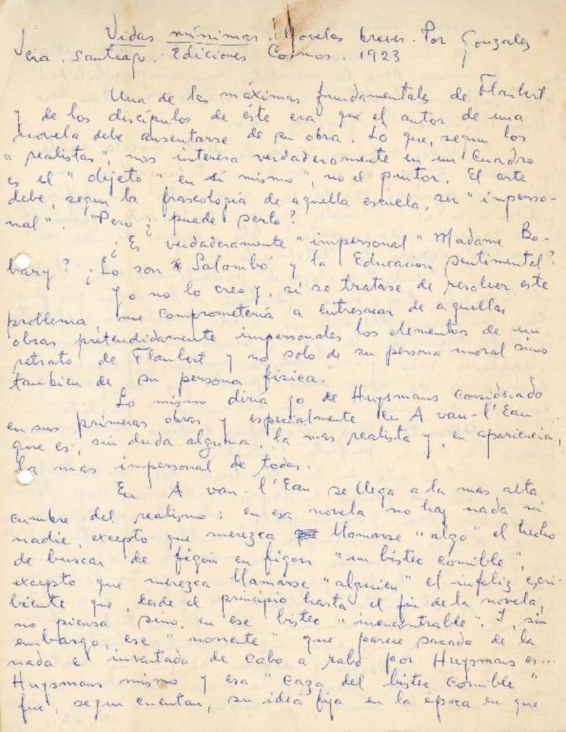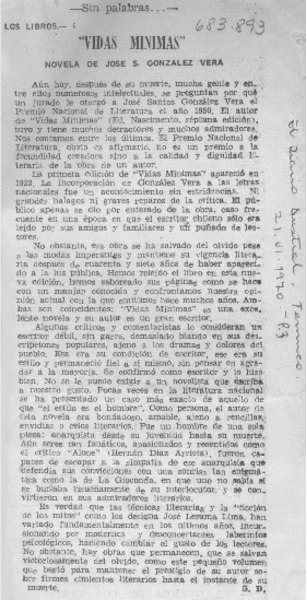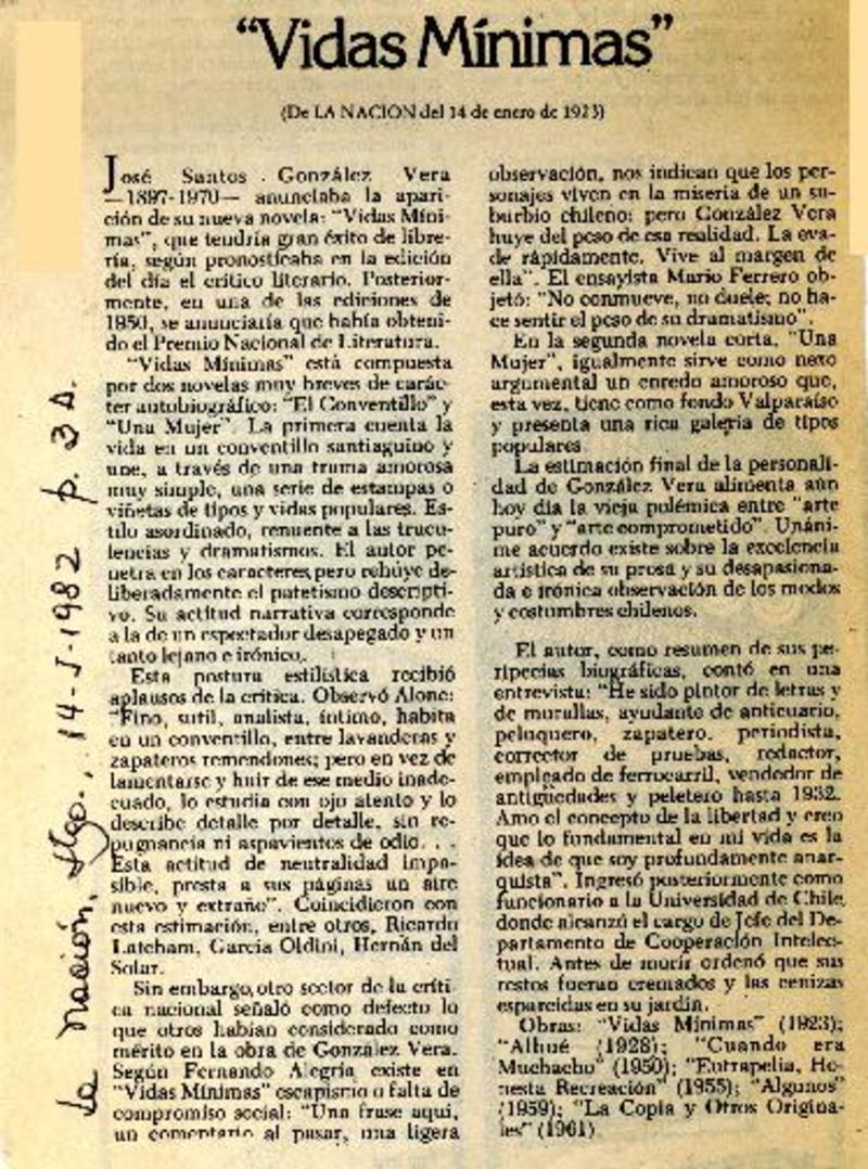 Vidas Minimas (1987-1970) [artículo] José Santos González Vera.