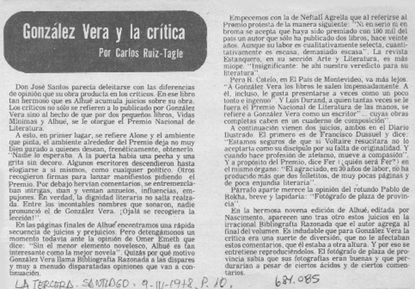 Críticas literarias Jose Santos González Vera (1959-1983) - Parte III [artículo] José Santos González Vera.