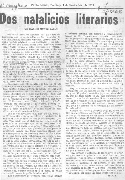 Dos natalicios literarios [artículo] Marino Muñoz Lagos.