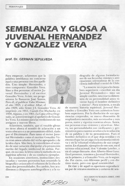 Semblanza y glosa Juvenal Hernández y González Vera [artículo] Germán Sepúlveda.