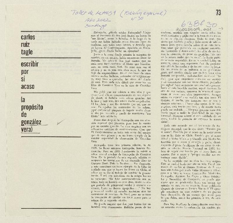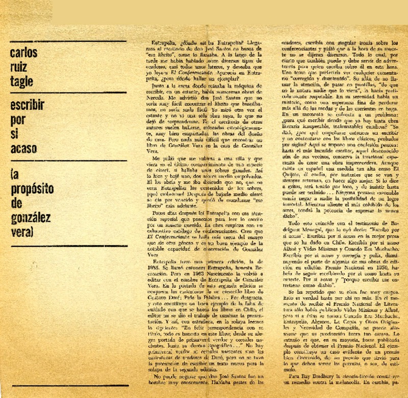 A 10 años de la partida de J. S. González Vera [artículo] Carlos Ruíz Zaldívar.