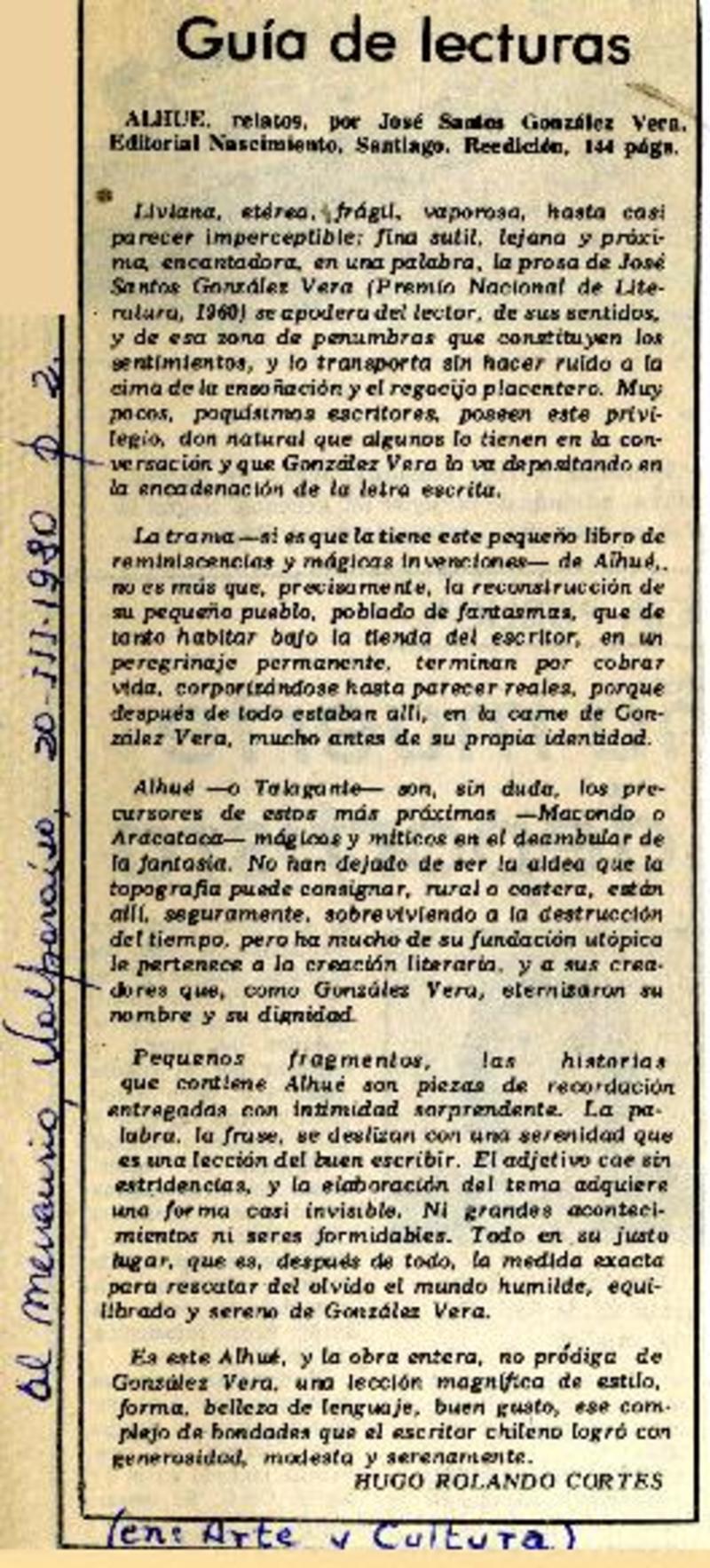 "Alhué" - González Vera, José Santos - Autores chilenos