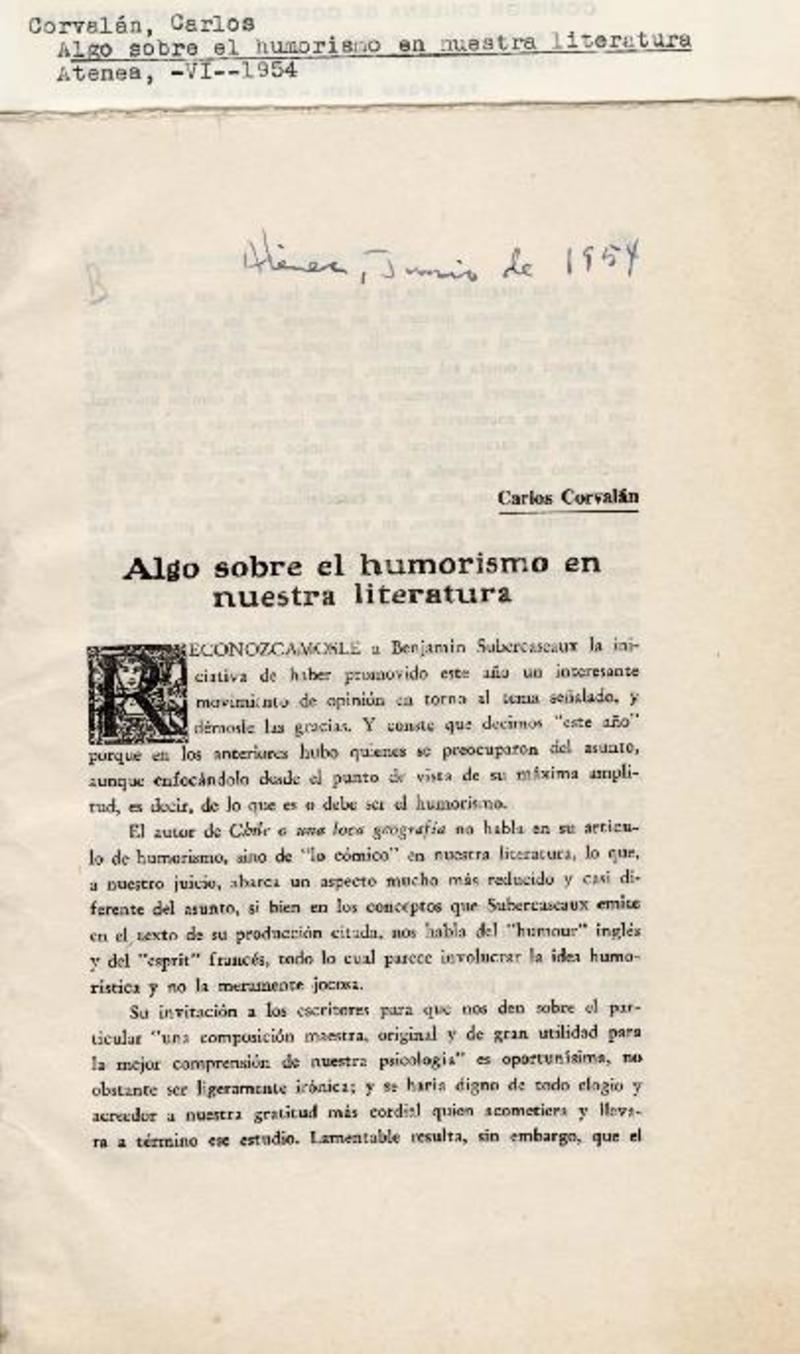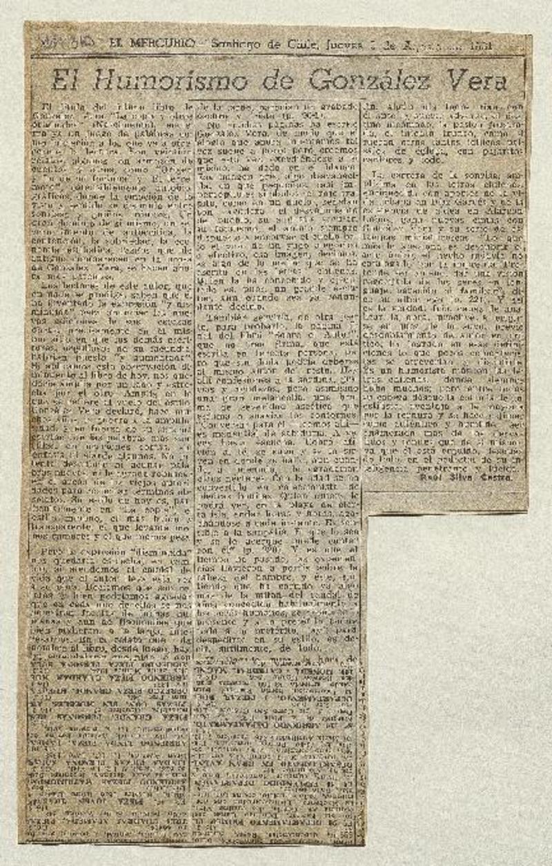 El Humorismo de González Vera [artículo] Raúl Silva Castro.