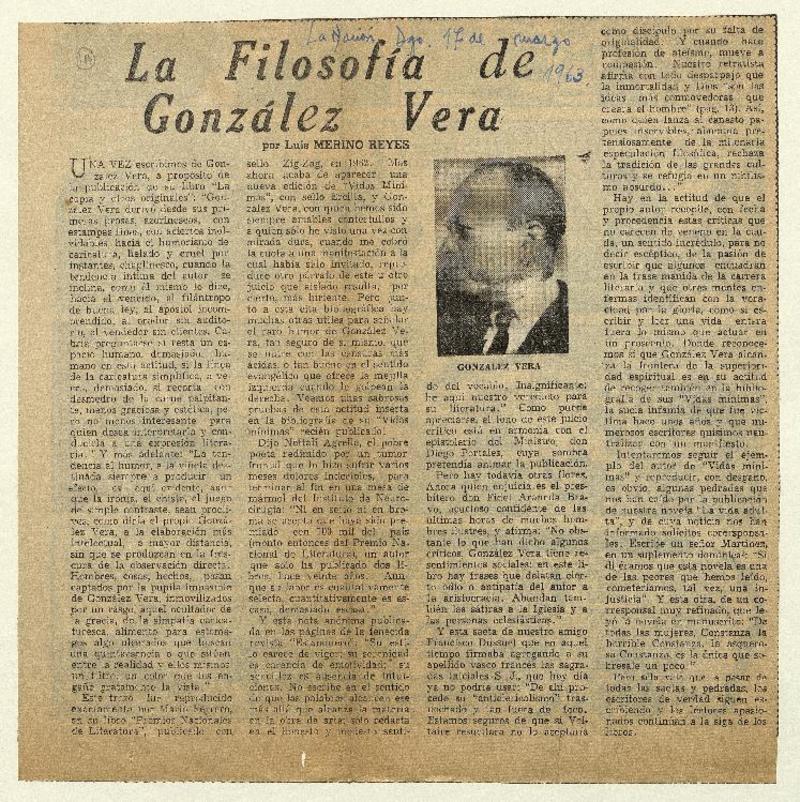 "La Filosofía de González Vera" [artículo] Luis Merino Reyes.