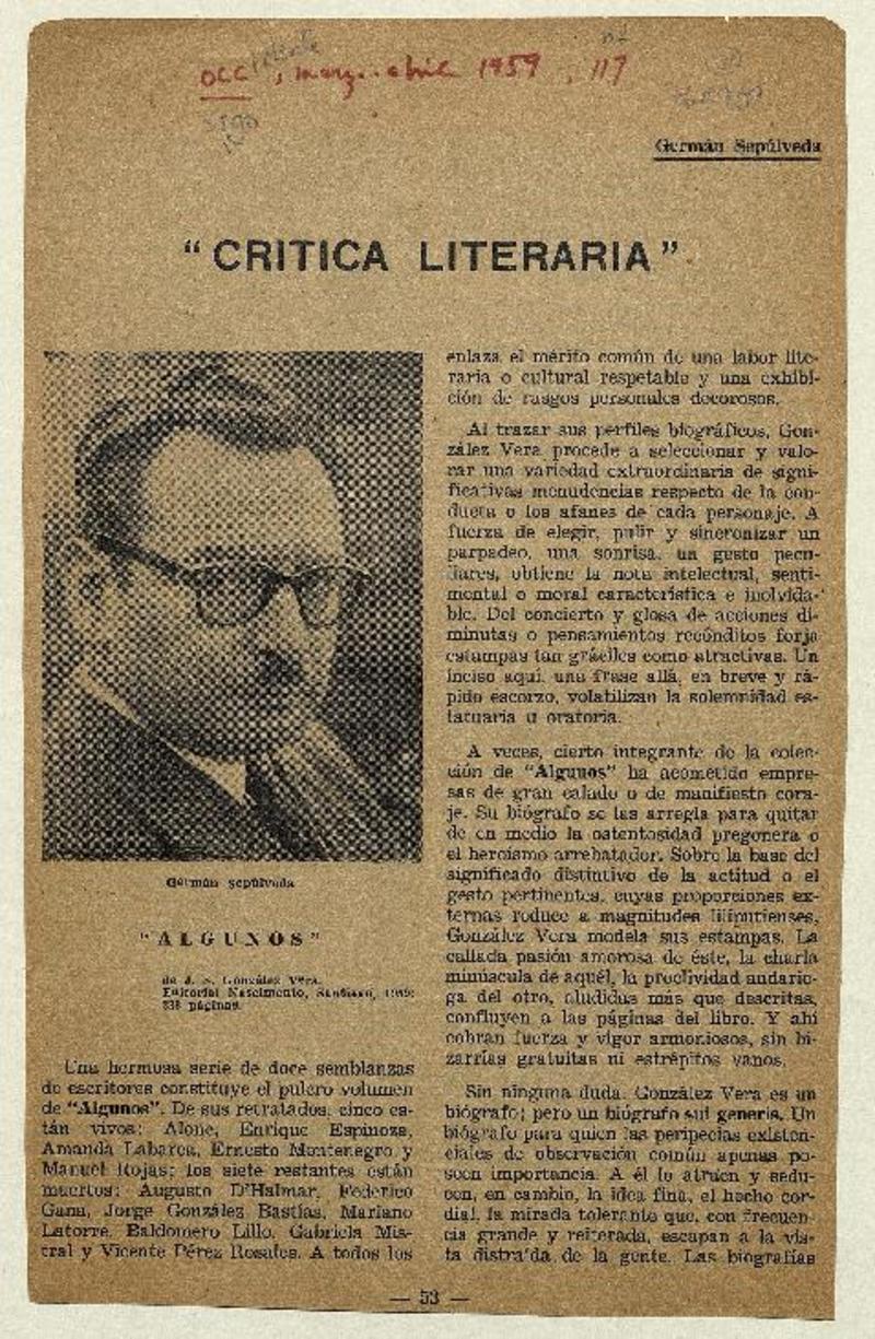 Críticas literarias Jose Santos González Vera (1959-1983) - Parte I [artículo]