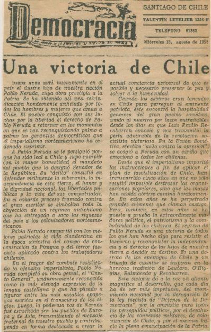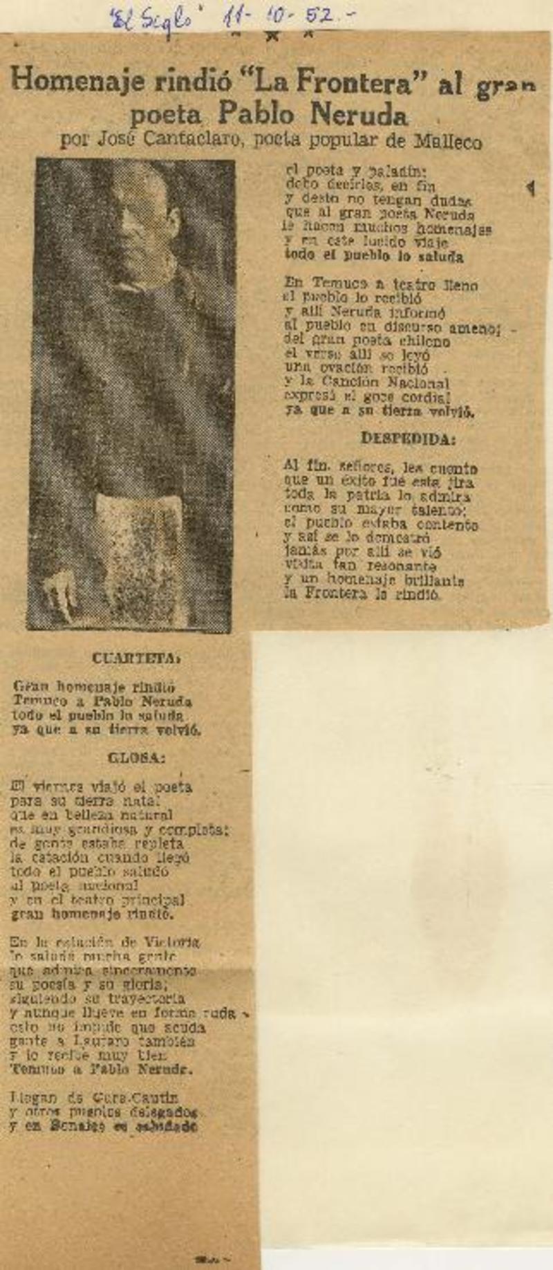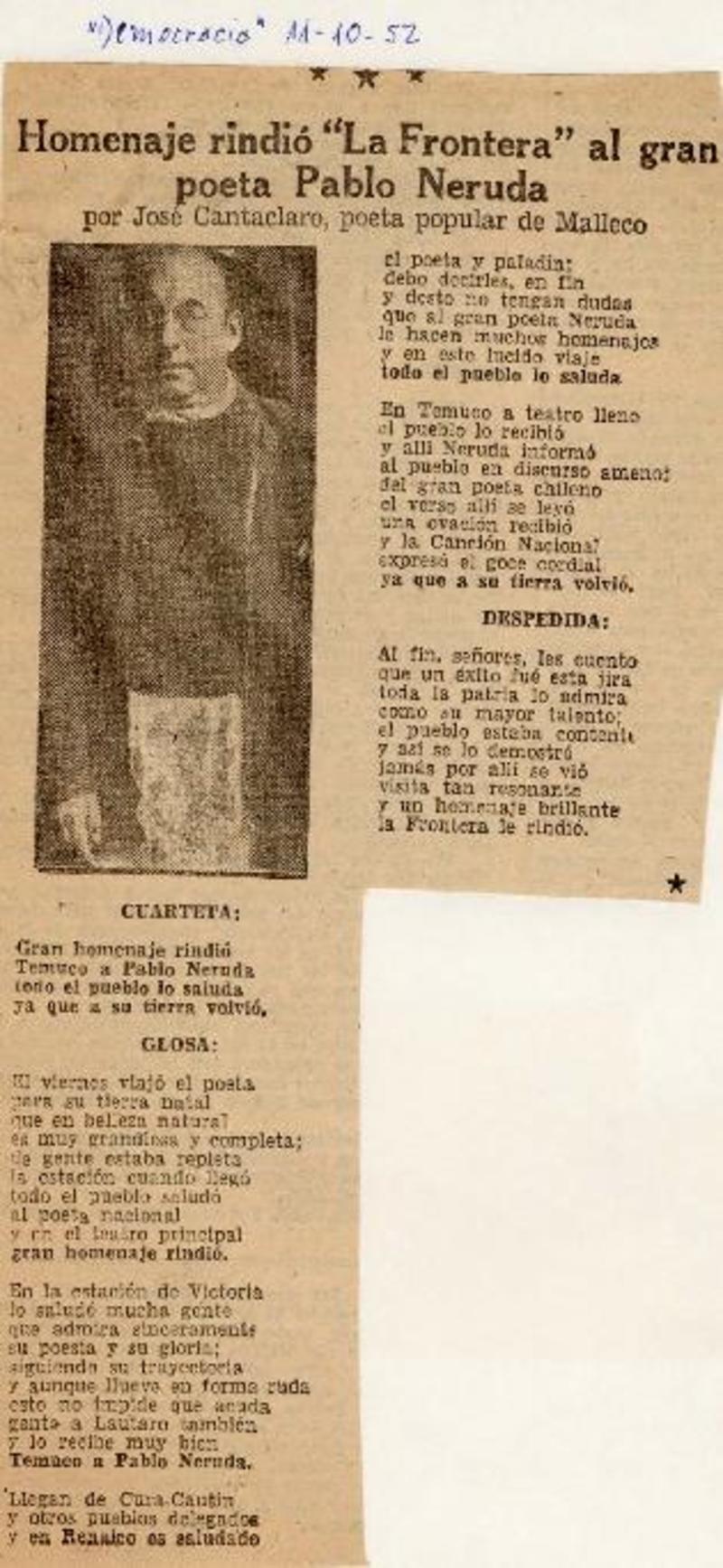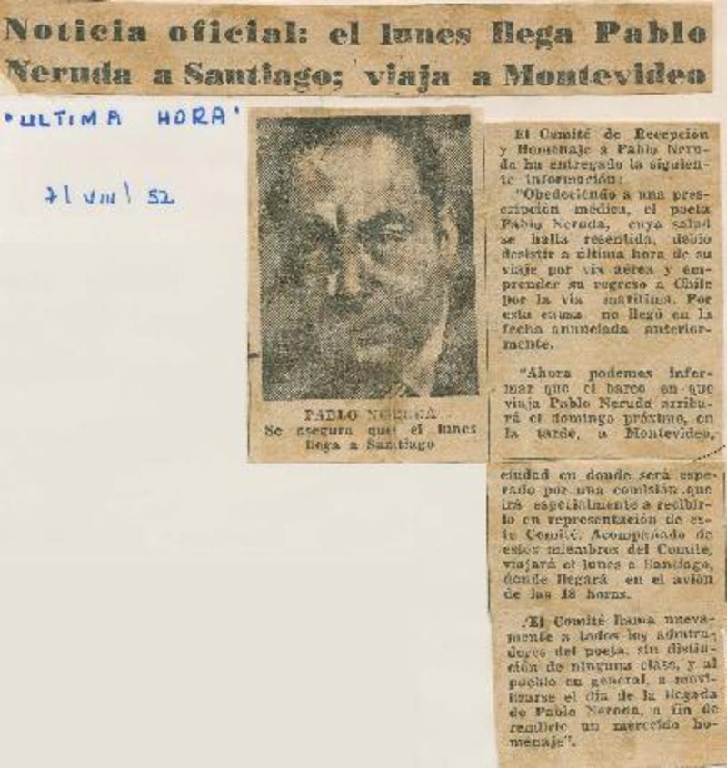 Pablo Neruda Carpeta 19 [artículo] : José Santos González Vera.
