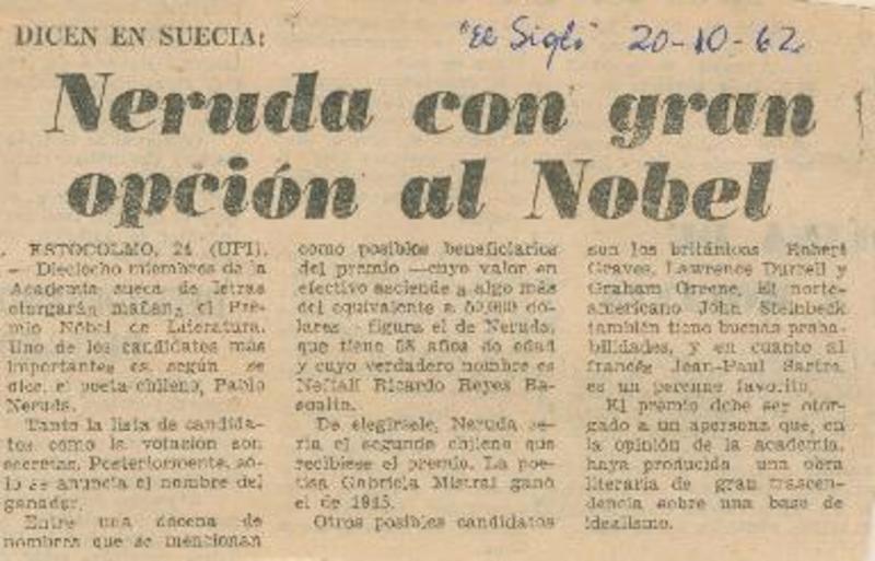 Pablo Neruda Carpeta 20 [artículo] : José Santos González Vera.