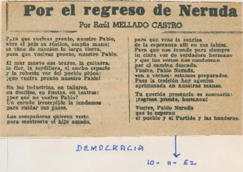 Pablo Neruda Carpeta 8 [artículo] : José Santos González Vera.