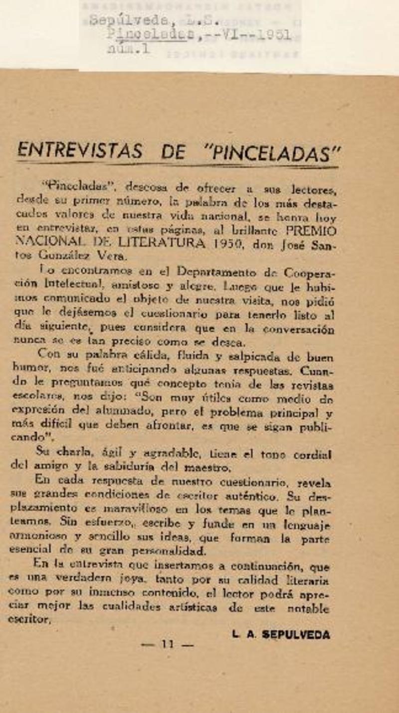 Autores chilenos - González Vera, José Santos - Entrevistas