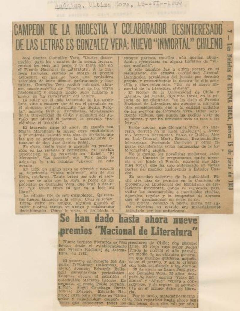 Premio Nacional de Literatura - Parte II [artículo] José Santos González Vera.