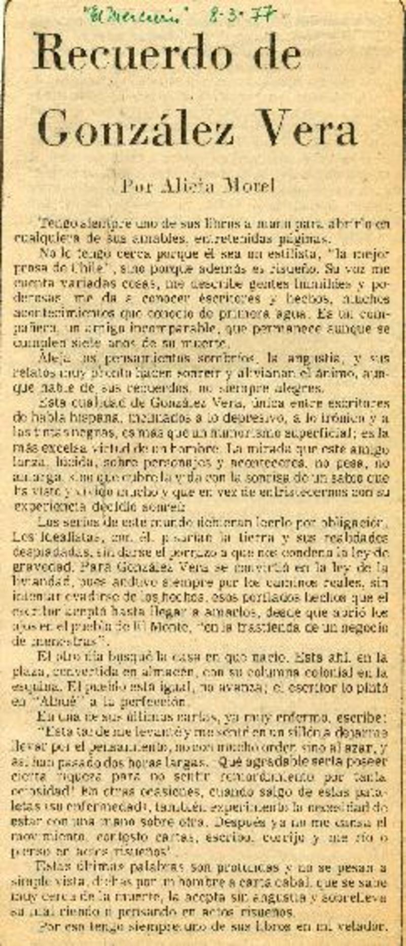Recuerdos de González Vera [artículo] Alicia Morel.