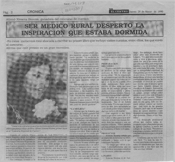 Ser médico rural despertó la inspiración que estaba dormida [artículo].